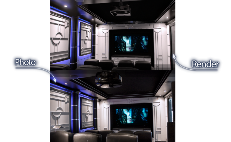 After our discovery meetings with dealers, clients and other interested parties, we create a CAD model of the room. In addition, we conduct a room mode acoustical analysis so we can understand the room’s unique acoustic properties. Seating layout options, sight line studies and overall space planning are performed; the results determine speaker locations, screen size, projector positioning, seating positions, any sound abatement specifications, appropriate acoustic treatments and other details for the room. Cinema Design Group then creates a 3D concept rendering of the design. During our presentation meeting, we take your additional feedback, make any necessary adjustments and submit a final concept layout and rendering for you and your client to approve.